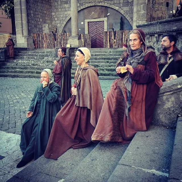 A Viterbo mi sono imbattuta in comparse che giravano tranquillamente per i vicoli medievali, vestite di tutto punto e pronte per il "ciak": i set principali sono stati il Palazzo dei Papi e il quartiere di S. Pellegrino. Capita molto spesso di imbattersi in riprese cinematografiche, ma ogni volta è come vivere in un incantesimo. Considero sempre un privilegio poter sbirciare nel "dietro le quinte", osservare il lavoro di registi, operatori, macchinisti, assistenti e attori.